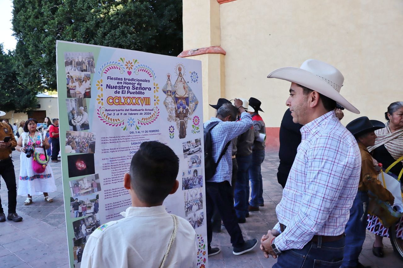 Junto al Rector del Santuario de la Virgen de El Pueblito, Fray Francisco Salinas Osornio; el Padre Guardián del Santuario, Antonio Miranda Arroyo, y Juan Licea Rodríguez, presidente de Corporaciones, el alcalde realizó el recorrido por las calles de El pueblito para la Pega de Bando con el programa de las tradicionales Fiestas de Febrero.