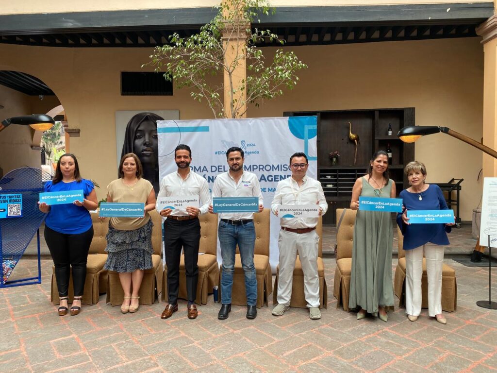 Durante esta firma de firmar la Carta Compromiso “El Cáncer en la Agenda 2024”, estuvieron presentes como testigos: Marcela de la Vega, presidenta de la asociación AMANC; Laura Amador, representante de la asociación Antes de Partir, en Querétaro; Leticia Luna, presidenta de la asociación Damas Azules y Edgar Adrián Cabrera Meneses, Presidente del Consejo del Banco de Tapitas.