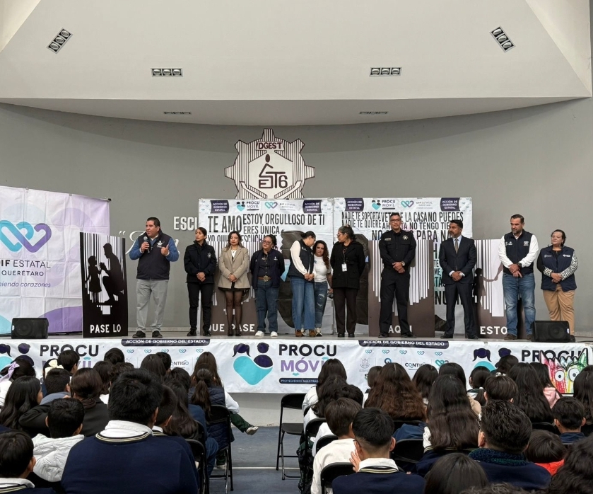 Con el objetivo de brindar herramientas positivas para los jóvenes e incentivar una cultura de paz social, el procurador de Protección de Niñas, Niños y Adolescentes, Manuel Hernández Rodríguez, encabezó el cierre del programa “Procuraduría Móvil 2025” que se realizó en la Escuela Secundaria Técnica No. 6 “Juan Antonio de Urrutia y Arana” ubicada en la zona industrial Benito Juárez del municipio de Querétaro.