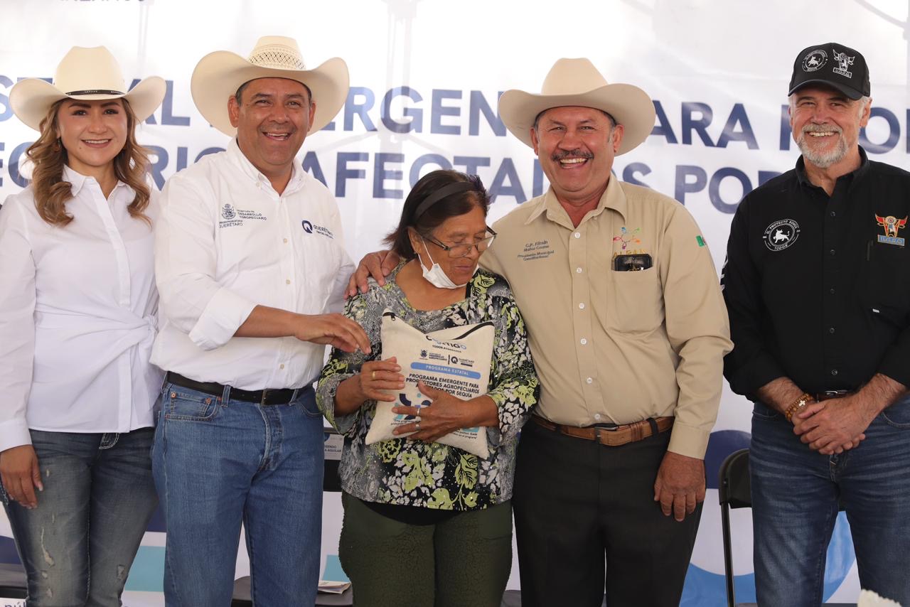 Con la finalidad de mitigar el impacto alimentario en agricultores de la Sierra y sus familias, el titular de de la Secretaría de Desarrollo Agropecuario, Rosendo Anaya hizo entrega de 116 toneladas de maíz para consumo humano en Jalpan de Serra y 116 toneladas adicionales, en Landa de Matamoros, en beneficio de 973 trabajadores del campo que padecen una afectación en mil 548 hectáreas de cultivo.