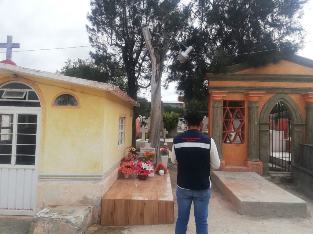 En el marco de la conmemoración del Día de Muertos, personal de la Secretaría de Salud (SESA) realizó un operativo del 1 al 5 de noviembre en panteones municipales del estado de Querétaro con el objetivo de proteger contra riesgos sanitarios a la población que visitó los cementerios.