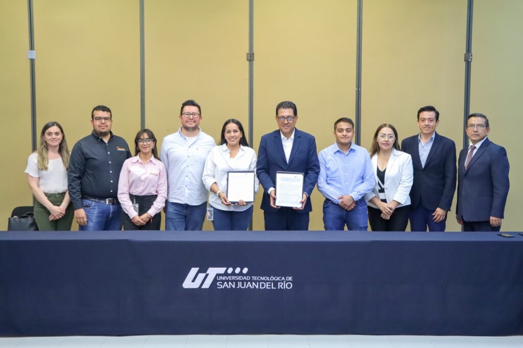 La Universidad Tecnológica de San Juan del Río y la empresa Inntech Automatización y Control de México concretaron una alianza colaborativa a fin de generar estrategias y acciones que contribuyan al desarrollo y crecimiento profesional tanto de las y los estudiantes, así como del personal de esta compañía, en una ceremonia encabezada por el rector, Fernando Ferrusca Ortiz y el gerente general de la empresa, Juan Manuel Soria Ramírez.