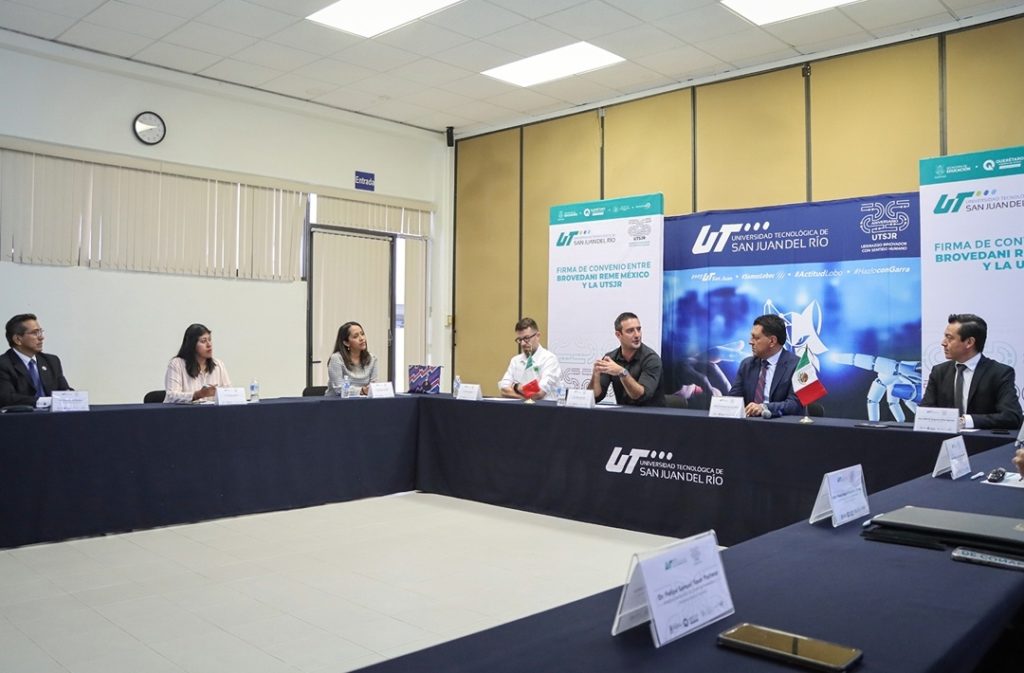 La Universidad Tecnológica de San Juan del Río (UTSJR) concretó una alianza colaborativa con la empresa italiana Brovedani Reme con el propósito de sumar acciones que contribuyan al desarrollo y crecimiento profesional de las y los alumnos, así como del personal de la empresa, acto concretado por el rector, Fernando Ferrusca Ortiz, y el director de la compañía, Vittorio Di Lella.
