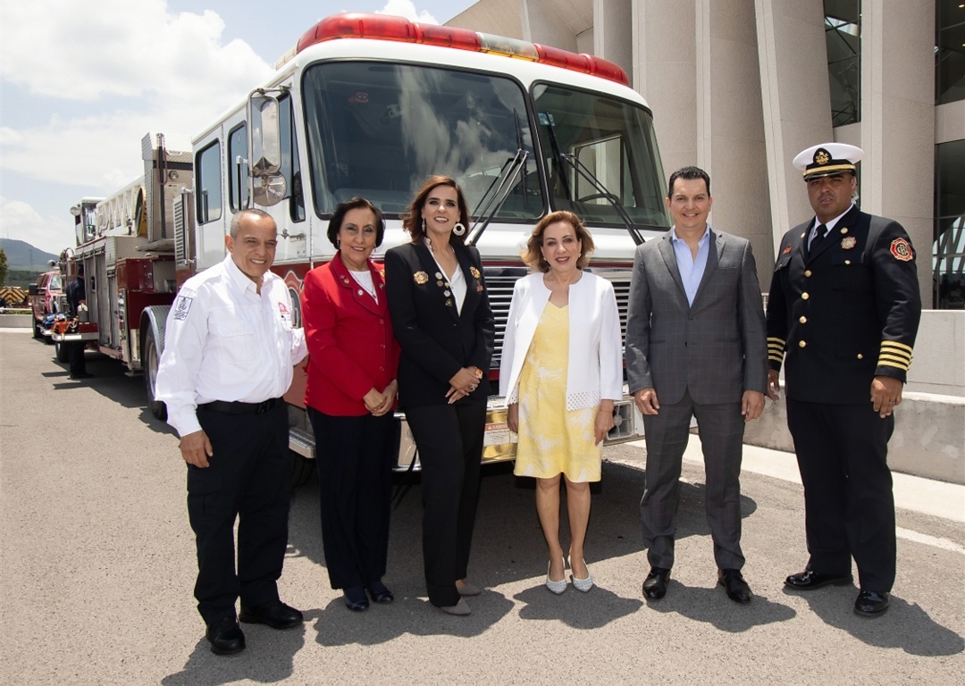 Junto a la consejera presidenta de Previsión y Protección S.C., Bomberos Querétaro, Myriam Vallarino Hernando, Guadalupe Murguía llevó a cabo la entrega de la presea «Manuel Pesquera» al bombero Kory Macausland, benefactor de los Bomberos en el estado de Querétaro.