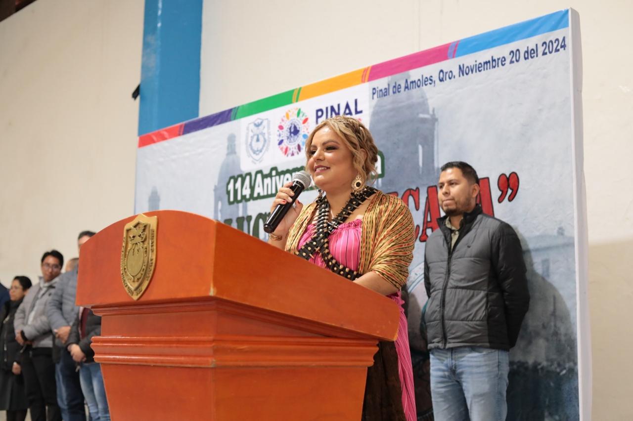 Pinal de Amoles, Qro. El Gobierno de Pinal de Amoles que encabeza Lupita Ramírez Plaza, Presidenta Municipal; realizó este miércoles el acto cívico conmemorativo por el 114 Aniversario del inicio de la Revolución Mexicana.