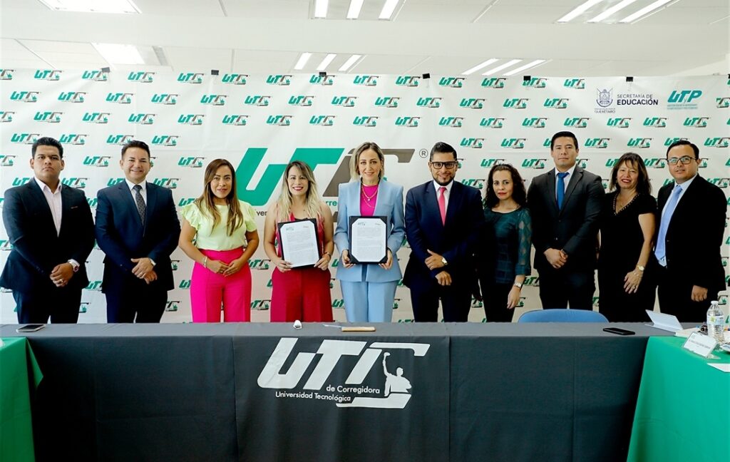 La rectora de la Universidad Tecnológica de Corregidora (UTC), Ana Eugenia Patiño Correa, y la presidenta del Colegio de Abogados Litigantes de Querétaro, Mayela Marisol Portos Martínez, firmaeon un acuerdo de colaboración para promover la profesionalización del gremio, así como la apertura de espacios para realizar prácticas profesionales para estudiantes, campañas de asesorías y capacitación mediante cursos, talleres y conferencias.