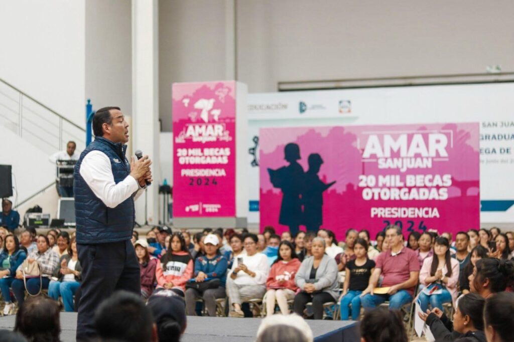 - En la cuarta de fecha de la entrega de apoyos del “Programa Becas Adelante”, Roberto Cabrera llamó a la ciudadanía a trabajar por San Juan a través de la educación y la familia.
