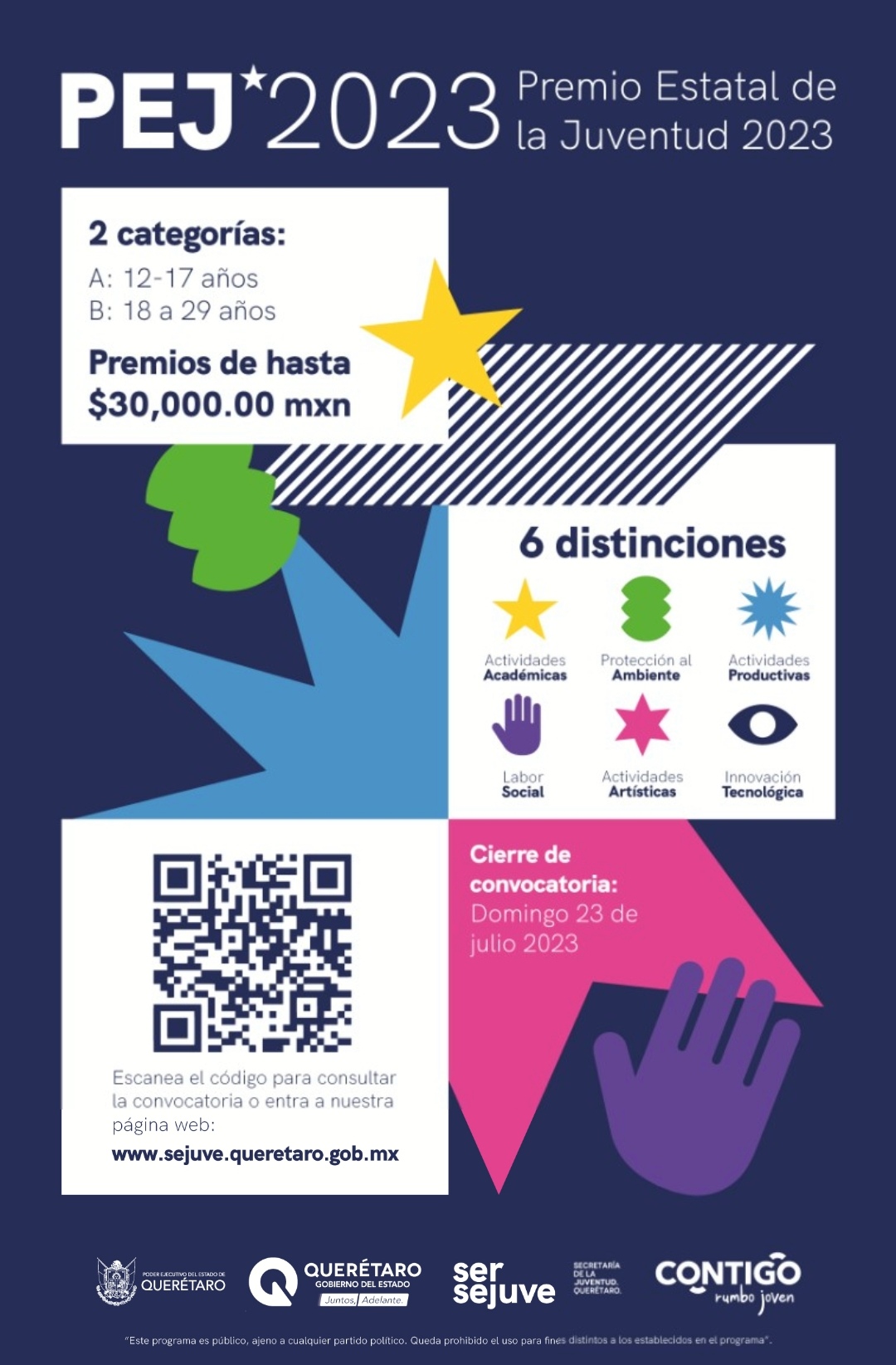 La convocatoria está abierta hasta el domingo 23 de julio, pueden participar jóvenes de todo el estado, inscribirse ellos mismos o con la posibilidad de que alguien más los postule. El registro deberá realizarse en la página de la Secretaría: sejuve.queretaro.gob.mx.