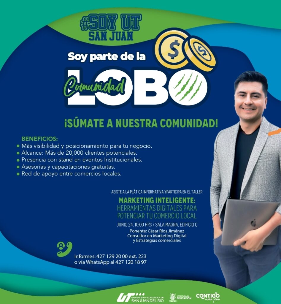 La Universidad Tecnológica de San Juan del Río (UT San Juan), a través de su Dirección de Vinculación, convoca a comerciantes, pequeños y medianos empresarios locales a sumarse al programa “Comunidad Lobo” con el objetivo de fortalecer una red de alianzas comerciales que impulsen la productividad de las empresas, además de apoyar la economía de las y los universitarios.