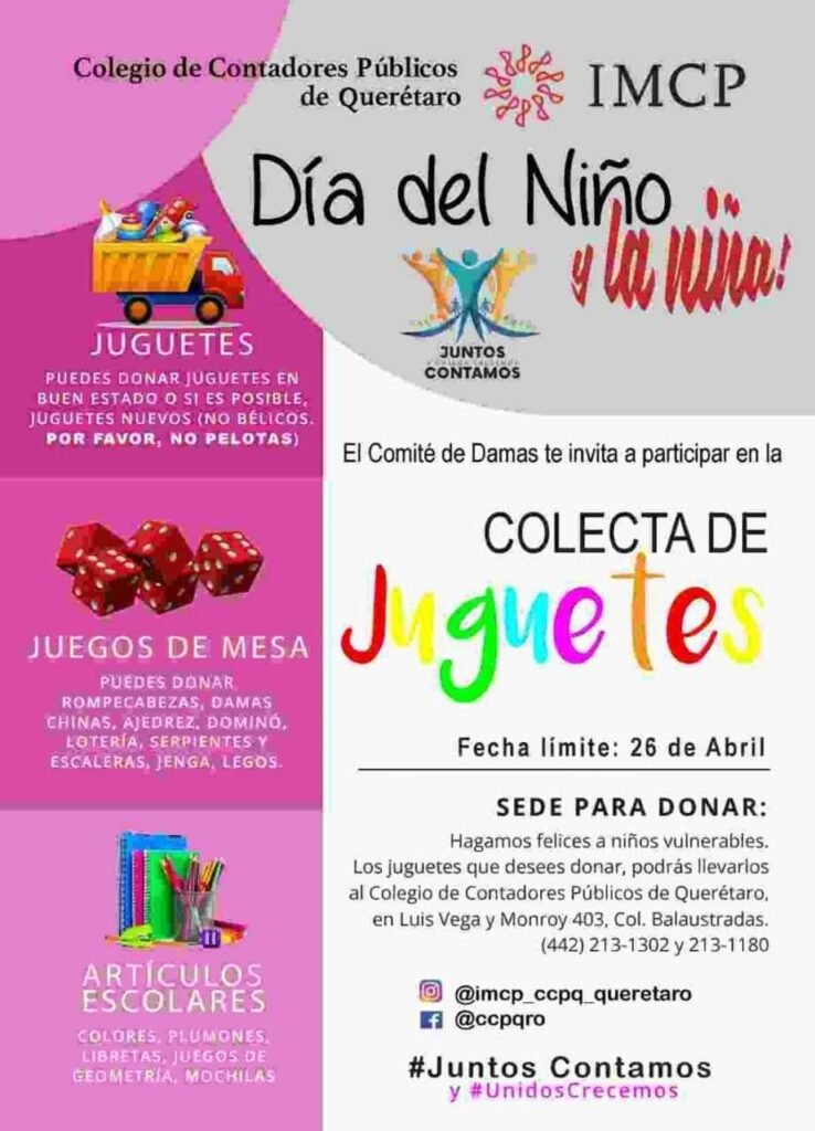 Alejandra Montes de Bautista, Presidenta del Comité de Damas del CCPQ, convocó a la sociedad a participar donando juguetes nuevos o en buen estado, juegos de mesa, útiles escolares y dulces. Piden por favor abstenerse de juguetes bélicos o de pilas.