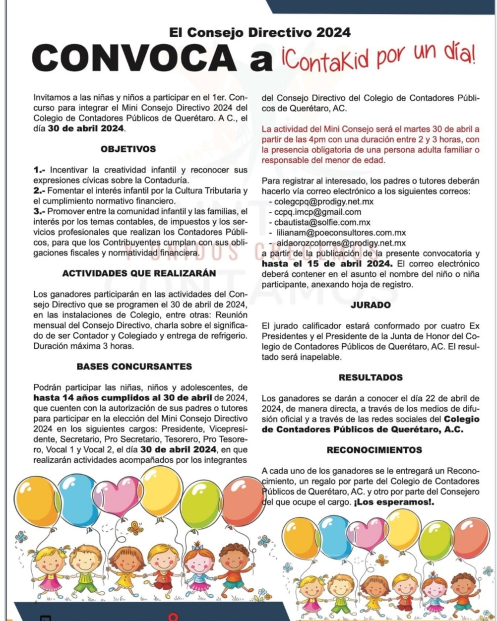 Invitan a participar en el Contakids, MiniConsejo Directivo para celebrar el Día del Niño