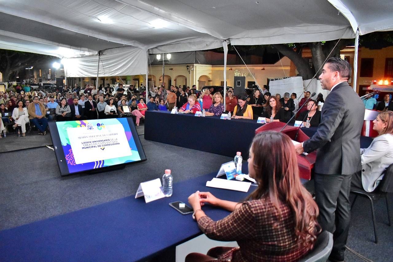 “Hoy de estamos de fiesta y de manteles largos. Tras 84 años de recobrar nuestra categoría como Municipio Libre, nuestro destino sigue siendo el mismo: hacer de Corregidora un municipio de leyes, identidad, decoro y oportunidades. Una tierra con grandes avances; y, también, con desafíos importantes”, destacó el edil en la Sesión Solemne de Cabildo, llevada a cabo en el Jardín Principal de El Pueblito, con la finalidad de compartir esta celebración con la ciudadanía.