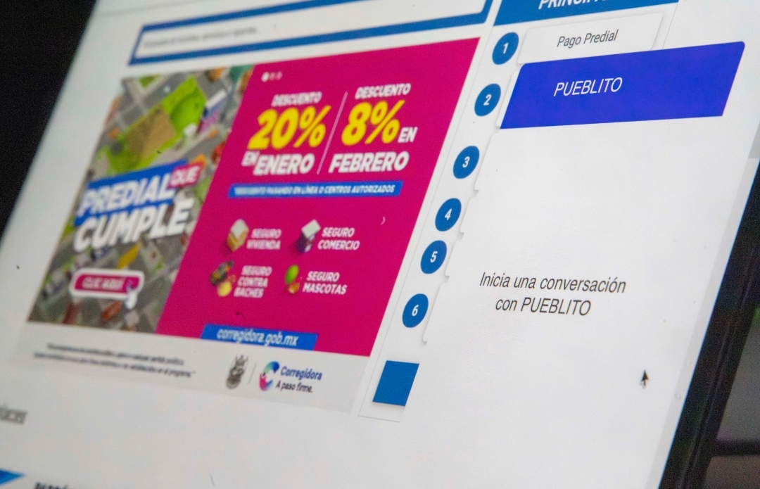 El asistente virtual o chatbot de nombre “Pregúntale a Pueblito”, es operado a través del número de WhatsApp 449 462 1002, y permite realizar varios trámites, como el pago del impuesto predial, generar líneas de captura con descuentos, reportar baches, solicitar el servicio de recolección de tiliches y canalizar y dar seguimiento a reportes ciudadanos mediante folios, lo que ha fortalecido la recaudación y mejorado la eficiencia de los servicios públicos.