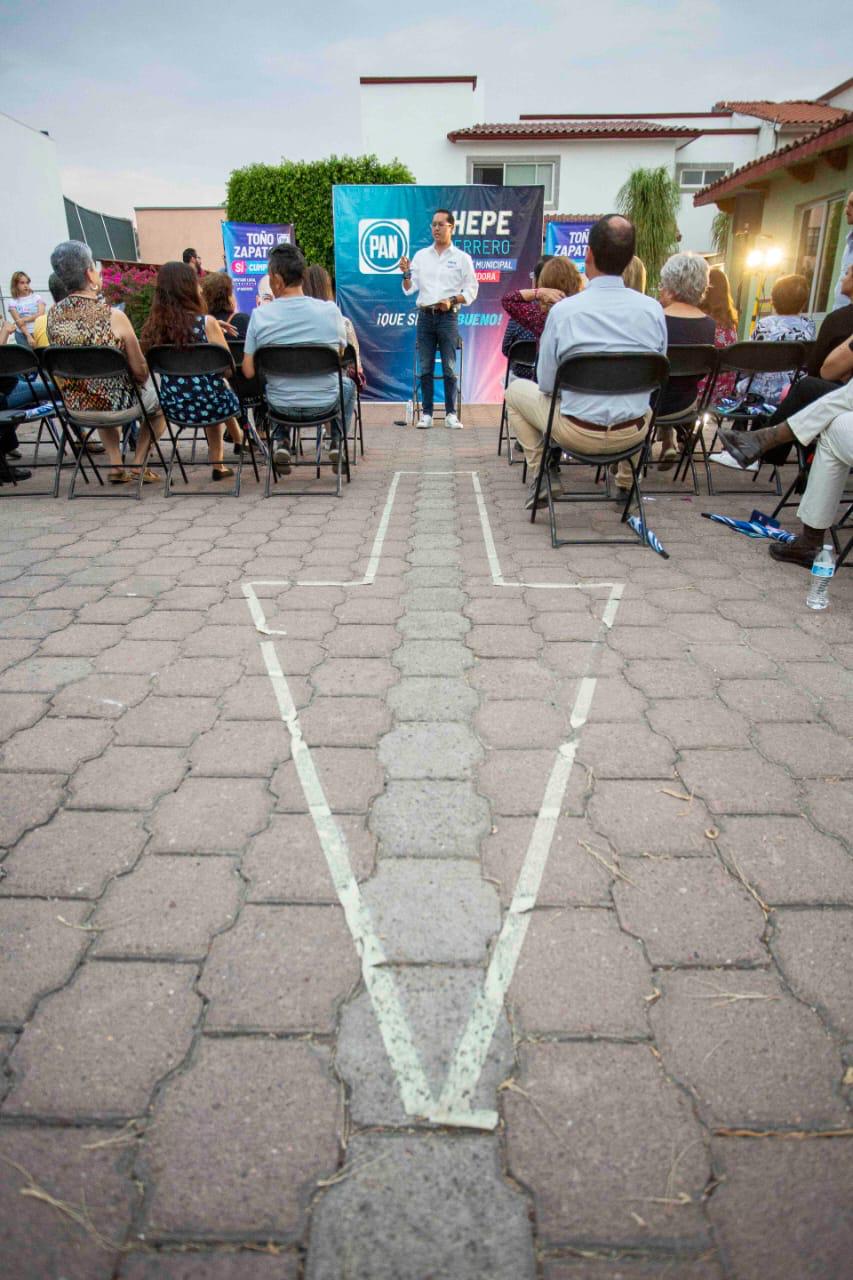 Chepe Guerrero, candidato a la presidencia municipal de Corregidora por el Partido Acción Nacional (PAN) cerró el cuarto día de campaña con la visita al Fraccionamiento de Pueblo Nuevo, donde presentó a las y los vecinos su propuesta “Hambre cero”, que busca crear una red de apoyo y donaciones para aquellas personas que más lo necesitan. De la misma forma, recibió las principales peticiones de las y los asistentes.