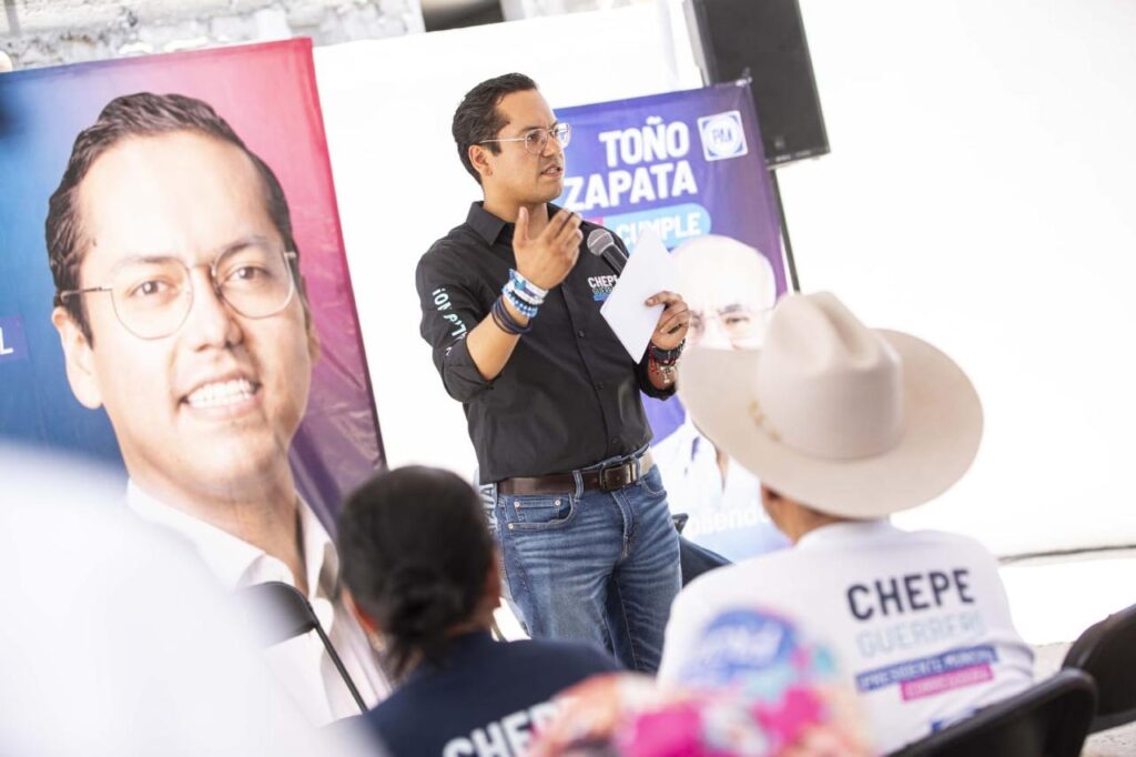 Durante su participación, Toño Zapata, candidato al VIII distrito local hizo un llamado a las y los ciudadanos a votar por Acción Nacional en todas las boletas: alcaldía, diputaciones, senaduría y presidencia. Pues aseguró que será con el PAN, que seguirá lo bueno para el municipio, estado y país.