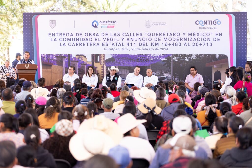 El gobernador, Mauricio Kuri González, encabezó la entrega de obras de infraestructura urbana en el municipio de Huimilpan y anunció la modernización de la carretera estatal 411, que se ampliará de dos a cuatro carriles en un tramo de 2.4 kilómetros, para darle continuidad al Boulevard Metropolitano, proyectos que en su conjunto representan una inversión superior a los 192 millones, y que responden, dijo, a una petición de las y los ciudadanos para potenciar su desarrollo y transformar su calidad de vida.
