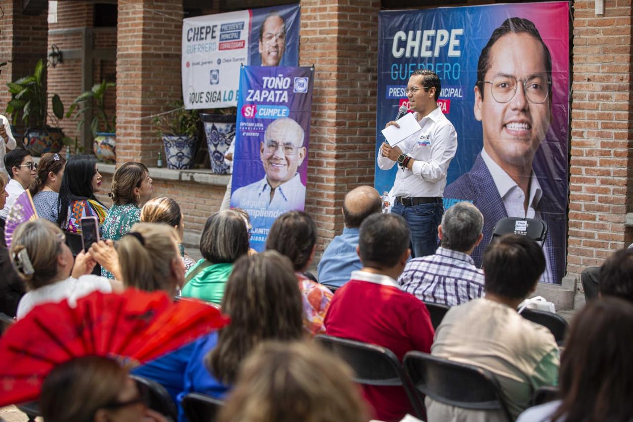 Chepe Guerrero, candidato por el Partido Acción Nacional (PAN) a la presidencia municipal de Corregidora, se reunió con líderes de opinión, entre ellos el expresidente municipal de la demarcación, Hilario Zúñiga, del Partido Revolucionario Institucional (PRI), ahí llamó a las y los presentes a defender juntos la calidad de vida que hay en la demarcación y hacer que siga lo bueno.