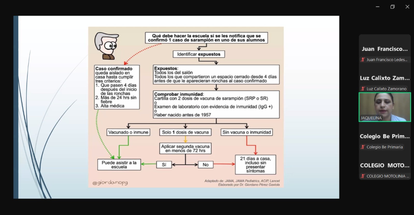 Con la finalidad de establecer medidas preventivas para salvaguardar la salud de niñas, niños y adolescentes, principalmente de educación básica y media superior, la secretaria de Educación del Estado de Querétaro (SEDEQ), Marha Soto, sostuvo una reunión virtual con personal de la Secretaría de Salud (SESEQ) y directivos de escuelas privadas, para establecer un protocolo de acción ante casos confirmados de sarampión en las escuelas.