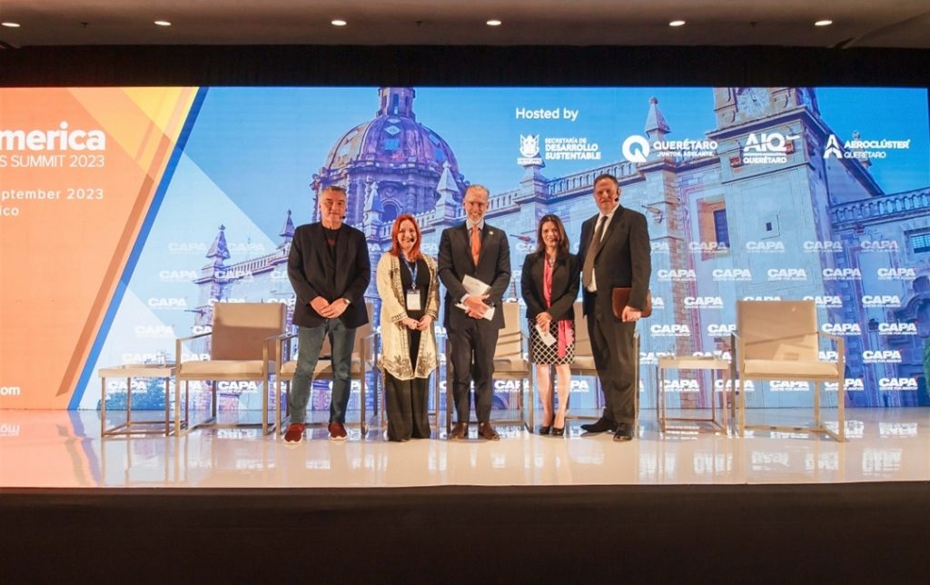 En el segundo día de actividades de CAPA Latin America Aviation & LCCs Summit 2023, el titular de la Secretaría de Desarrollo Sustentable (SEDESU), Marco Antonio Del Prete Tercero, participó en el panel “Sostenibilidad para lograr los objetivos de la industria en América Latina”, en el cual destacó el trabajo que se realiza en la entidad para el desarrollo de combustible sostenible para la aviación a través de la Universidad Aeronáutica en Querétaro (UNAQ) y la empresa GE.