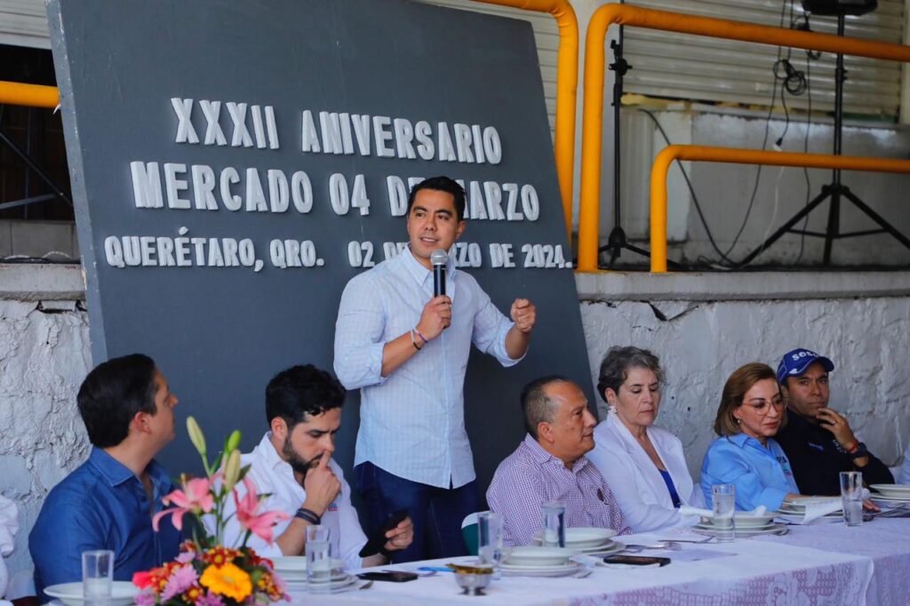 Lo anterior, lo expresó Felifer Macías, al acudir invitado por comerciantes al Aniversario 32 del Mercado 4 de Marzo, donde destacó la importancia de que el municipio continúe apoyando al comercio queretano a través de programas sociales y dignificación de espacios para que les vaya mejor.