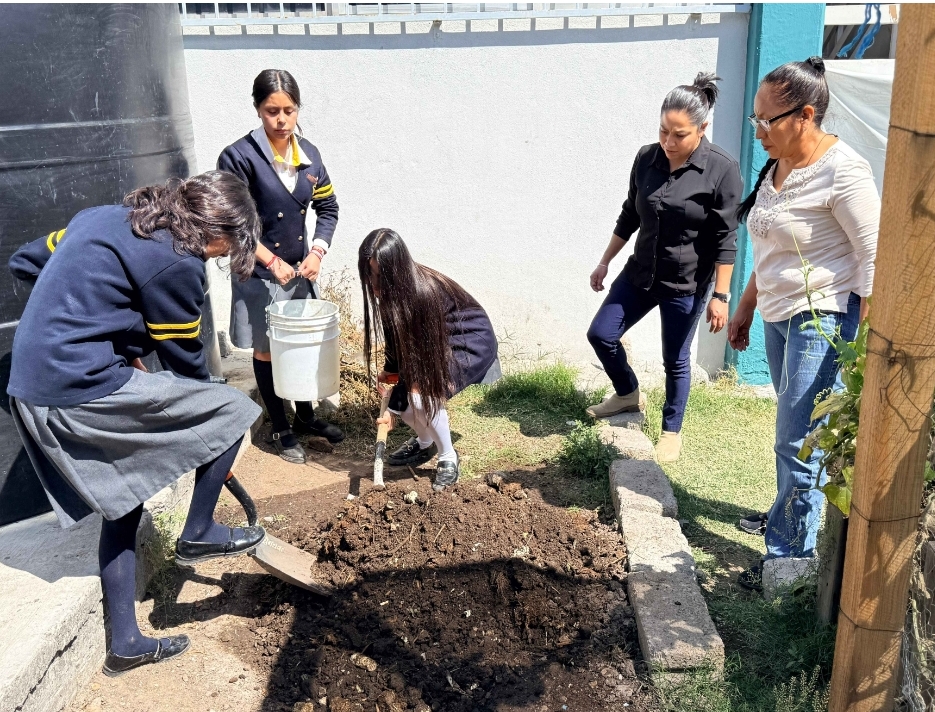 Entre otras bondades, el proyecto capacitó a las y los estudiantes en la elaboración de fertilizante orgánico (BIOL), la producción de composta y el cultivo de hortalizas, acciones que se realizaron en vinculación con la Secretaría de Desarrollo Agropecuario del municipio de San Juan del Río, que brindó capacitación a docentes y estudiantes para la creación de huertos biointensivos.