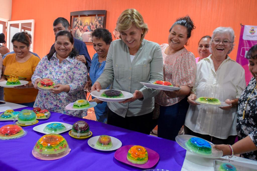 El taller de gelatina artística se llevó a cabo en la colonia Tierra Blanca, beneficiando a 35 familias, las cuales ahora cuentan con este nuevo oficio para desarrollar una actividad económica en beneficio de sus hogares.
