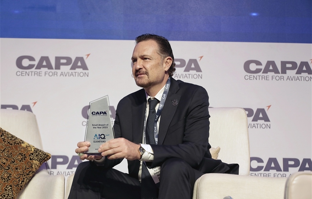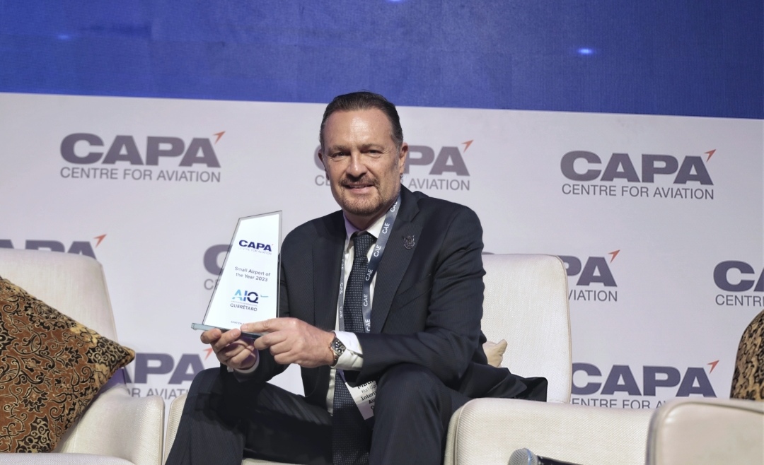 Durante su participación en los premios CAPA World Aviation Summit & Awards for Excellence 2023, el gobernador, Mauricio Kuri González, recibió el galardón que distingue al Aeropuerto Internacional de Querétaro (AIQ) como el “Aeropuerto Regional del Año”.