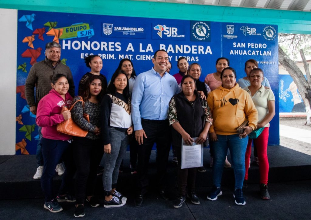El presidente municipal de San Juan del Río, Roberto Cabrera Valencia, asistió este lunes a los honores a la Bandera en la escuela primaria Ciencias y Letras, ubicada en San Pedro Ahuacatlán, donde destacó que la calidad de vida se obtiene a través de la educación y los valores que se promueven en la escuela y en el hogar.