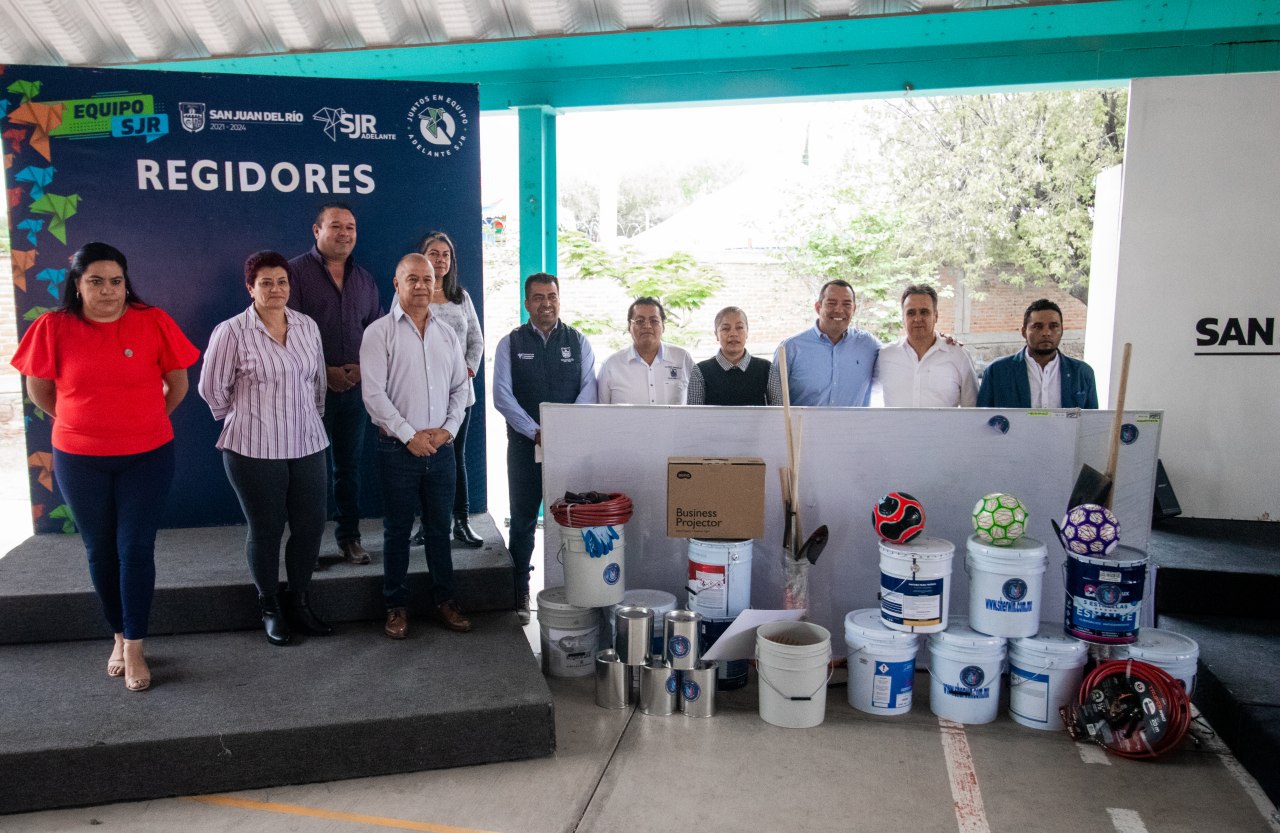 Detalló que al jardín de niños Francisco Eduardo Tresguerras, las primarias Historia y Cultura, Ciencias y Letras, la secundaria Emeterio González, la parroquia y la delegación San Pedro, así como Fomento al Deporte, recibieron, en conjunto, cuatro pintarrones, esmalte, pintura, kits de jardinería, un proyector, dos toneladas de cemento, láminas de tres y cinco metros, impermeabilizante, un juego de baño, un migitorio y balones de futbol.