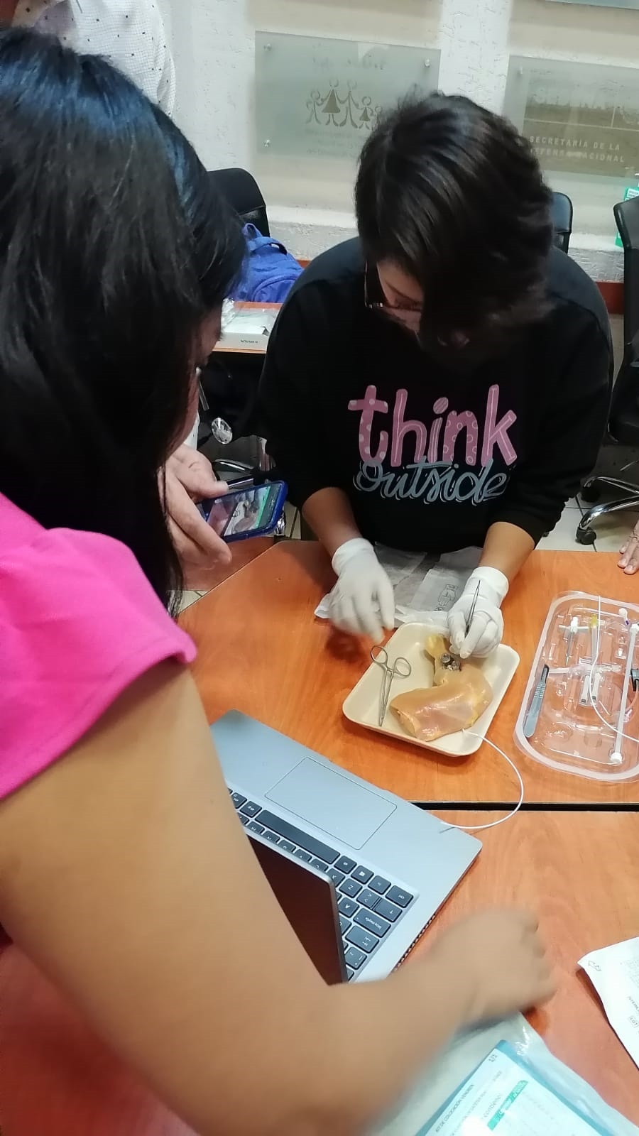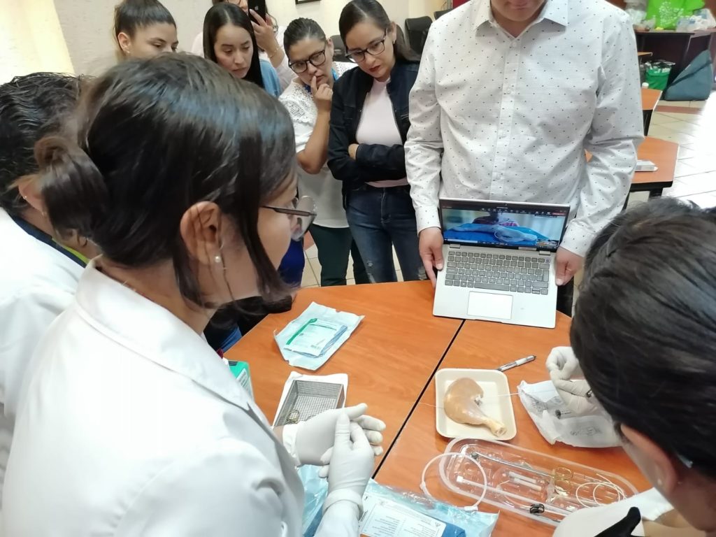 Durante el desarrollo del curso se abordaron temas teóricos como: indicaciones, colocación, mantenimiento y retiro del PICC-PORT. Para el taller, se formaron mesas de trabajo en las que sus integrantes realizaron la didáctica de punción, la creación del bolsillo subcutáneo y la tunelización del catéter, en muslos de pavo.