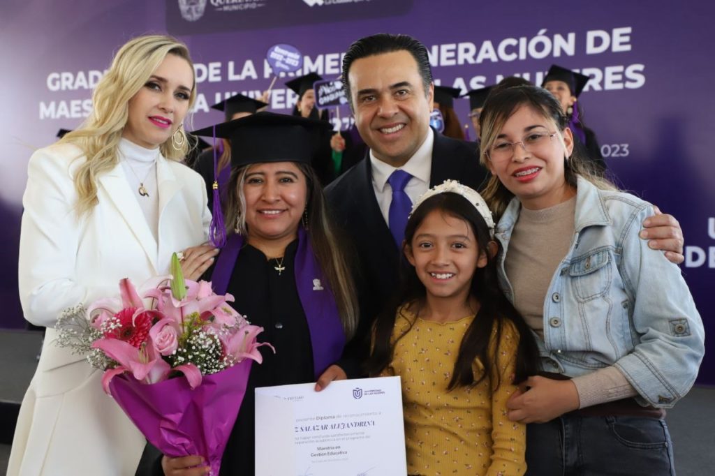Acompañado de su esposa y Presidenta del Patronato del Sistema Municipal DIF, Arahí Domínguez, Luis Nava elogió la determinación de las graduadas porque superaron dudas y obstáculos para alcanzar sus metas. Además dijo, esta primera generación de la Universidad de las Mujeres representa un compromiso cumplido con las queretanas de brindarles apoyo para concluir sus estudios y seguir sus planes de vida.