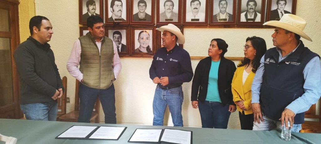 El Presidente Municipal de San Joaquín Carlos Manuel Ledesma recibió al Ing. Rosendo Anaya Secretario de Desarrollo Agropecuario de Gobierno del Estado, con quién firmó el convenio de colaboración «Contigo en concurrencia para la productividad rural”.