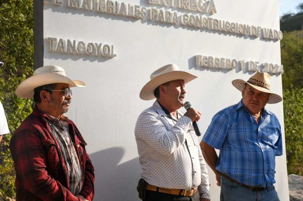 en la Delegación de Tancoyol, para llevar a cabo la entrega de material fundamental para la construcción del vado, una iniciativa respaldada completamente por recursos municipales.