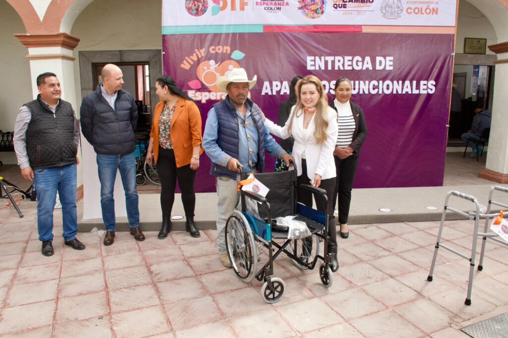 Esta mañana la presidenta del DIF municipal Colón, Elena Arreguín de la Torre, encabezó la entrega de aparatos funcionales a personas con discapacidad y de la tercera edad.