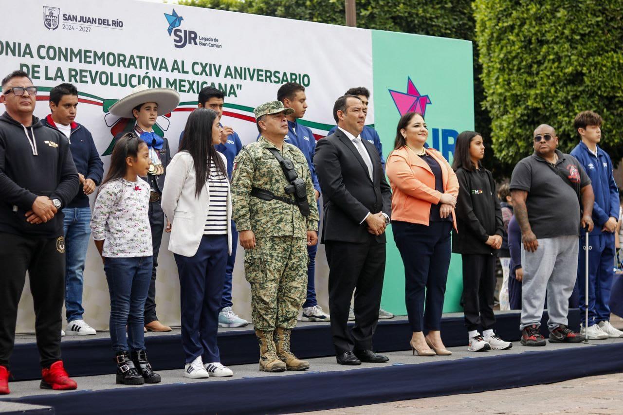 A partir del esfuerzo de cada sanjuanense, de dar lo mejor de sí mismas y mismos, se construye un mejor gobierno, una mejor sociedad, un mejor San Juan y nuestro legado de bien común, afirmó el presidente municipal de San Juan del Río, Roberto Cabrera Valencia, durante el acto cívico con motivo del 114 Aniversario del Inicio de la Revolución Mexicana, que precedió al Desfile Cívico-Deportivo que se desarrolló en la zona Centro de la demarcación.
