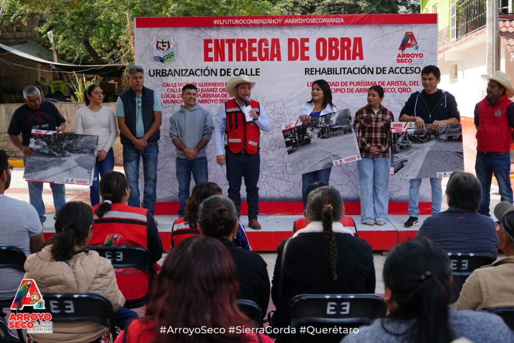 El presidente municipal, Fernando Sánchez Gil, en compañía de la Lic. Ivette Landa, representante regional de SEDESOQ, autoridades municipales y ejidales, entregó una obra integral de urbanización del lugar en la localidad de Purísima de Arista, con una inversión total de 2 millones de pesos, beneficiando con ello a más de 2,600 habitantes.