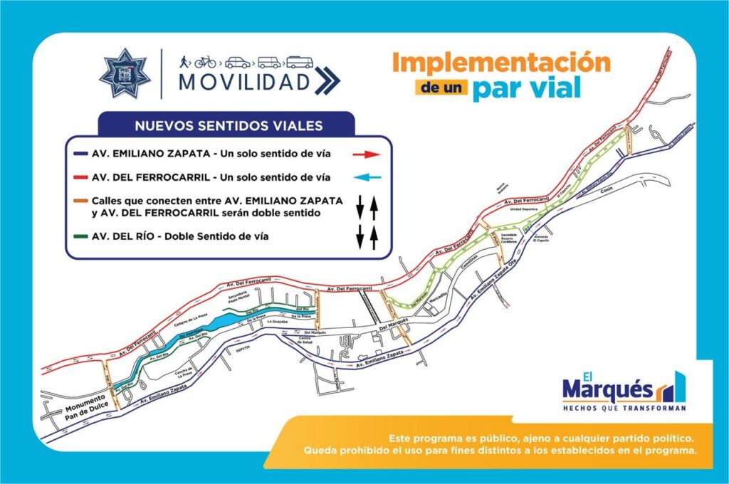 De esta forma, la avenida Emiliano Zapata transitará en un solo sentido, del Pan de Dulce hacia el Socavón. Mientras que la avenida Ferrocarril, de igual manera, tendrá un solo sentido, del puente del Socavón hacia el Pan de Dulce. Asimismo, en la avenida central (paralela al río) la movilidad vehicular será en doble sentido, al igual que el resto de las calles.
