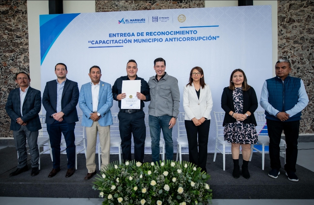 Como resultado de las buenas prácticas ejercidas en materia de transparencia, la administración municipal de El Marqués, encabezada por Rodrigo Monsalvo Castelán, fue reconocida por el Sistema Estatal Anticorrupción por lograr que el 100% del personal concluyera satisfactoriamente la capacitación “municipios anticorrupción”.