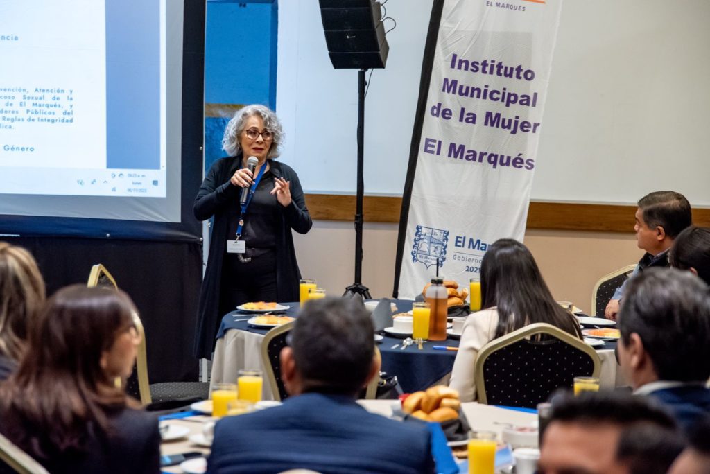 Por su parte, Lucía Ferrusca Rivera, directora del Instituto Municipal de la Mujer, explicó que El Marqués es la primera demarcación en el estado que capacita a sus servidores públicos para fomentar las áreas libres de violencia y cultivar la perspectiva de género.