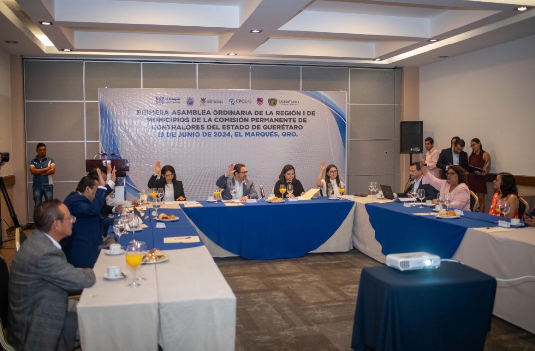 La presidenta municipal de El Marqués, Claudia Martínez Guevara, acompañada por el secretario de Contraloría del Poder Ejecutivo del Estado de Querétaro y presidente de la Comisión Permanente de Contralores del Estado de Querétaro, Óscar García González, encabezaron la «Primera Asamblea Ordinaria de la Región I de Municipios de la Comisión