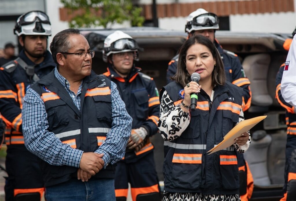 Encabezado por la presidenta municipal, Claudia Martínez Guevara, este simulacro también tuvo el objetivo de conmemorar el Día Nacional de Protección Civil y reconocer la labor que realizan las corporaciones de esta materia.
