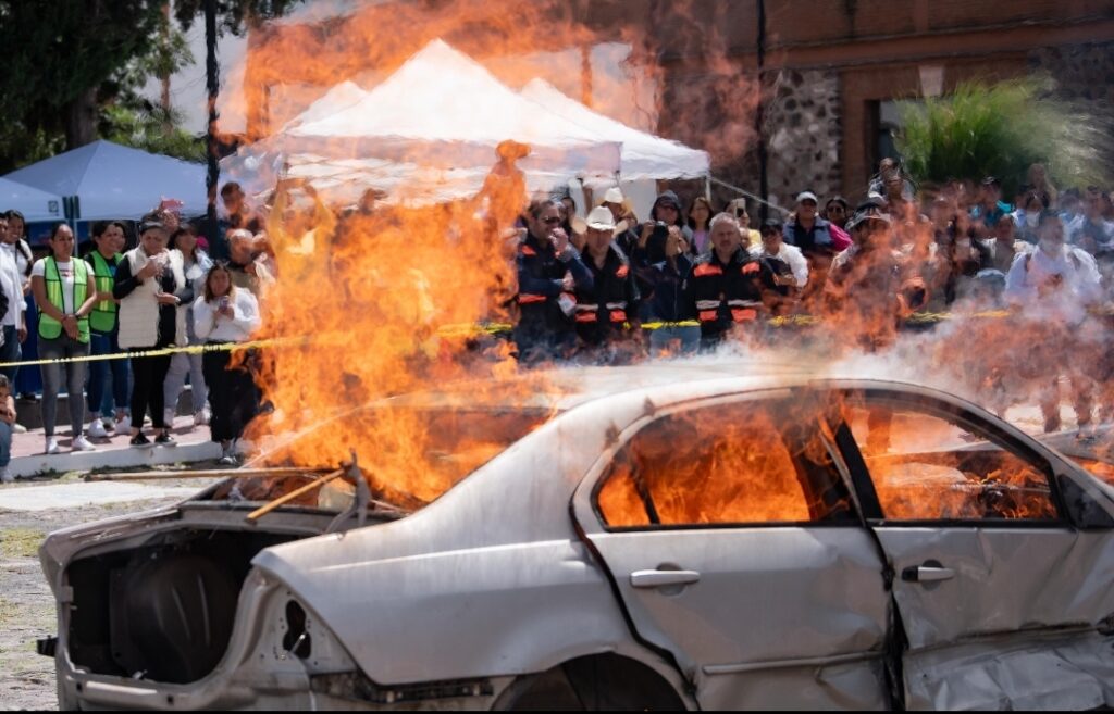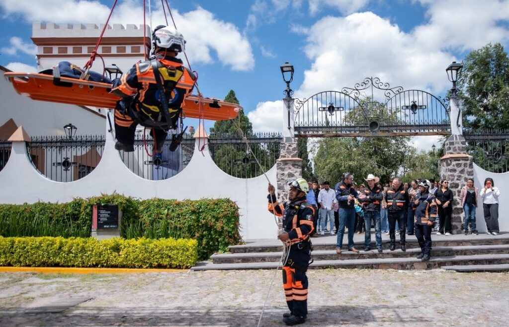 Adicionalmente, se realizaron tres simulaciones especiales para mostrar la capacidad de respuesta ante diferentes emergencias. En la explanada del Centro Municipal, elementos de Gestión Integral de Riesgos, Rescate y Atención Médica Prehospitalaria rescataron a un ciudadano simulado atrapado en un vehículo con daños estructurales, utilizando herramientas electrohidráulicas de alta especialización.