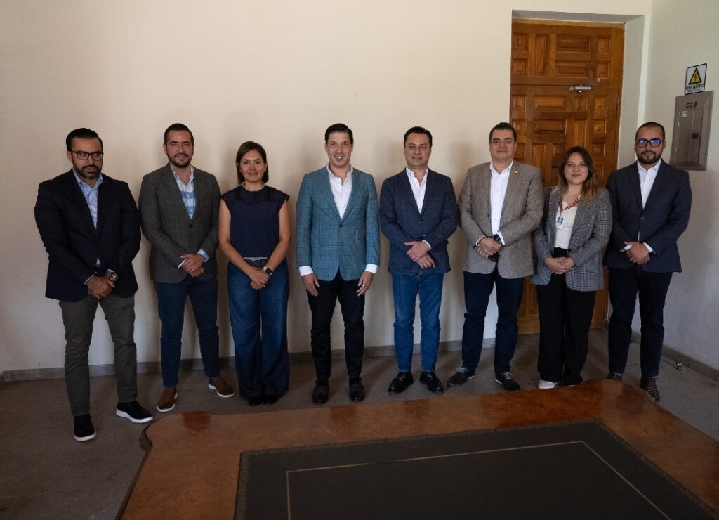 El presidente municipal de El Marqués, Rodrigo Monsalvo Castelán, acompañado por el secretario del Ayuntamiento, Rodrigo Mesa Jiménez, sostuvo una reunión con representantes de la Dirección Regional de la Cadena Comercial OXXO en Querétaro.