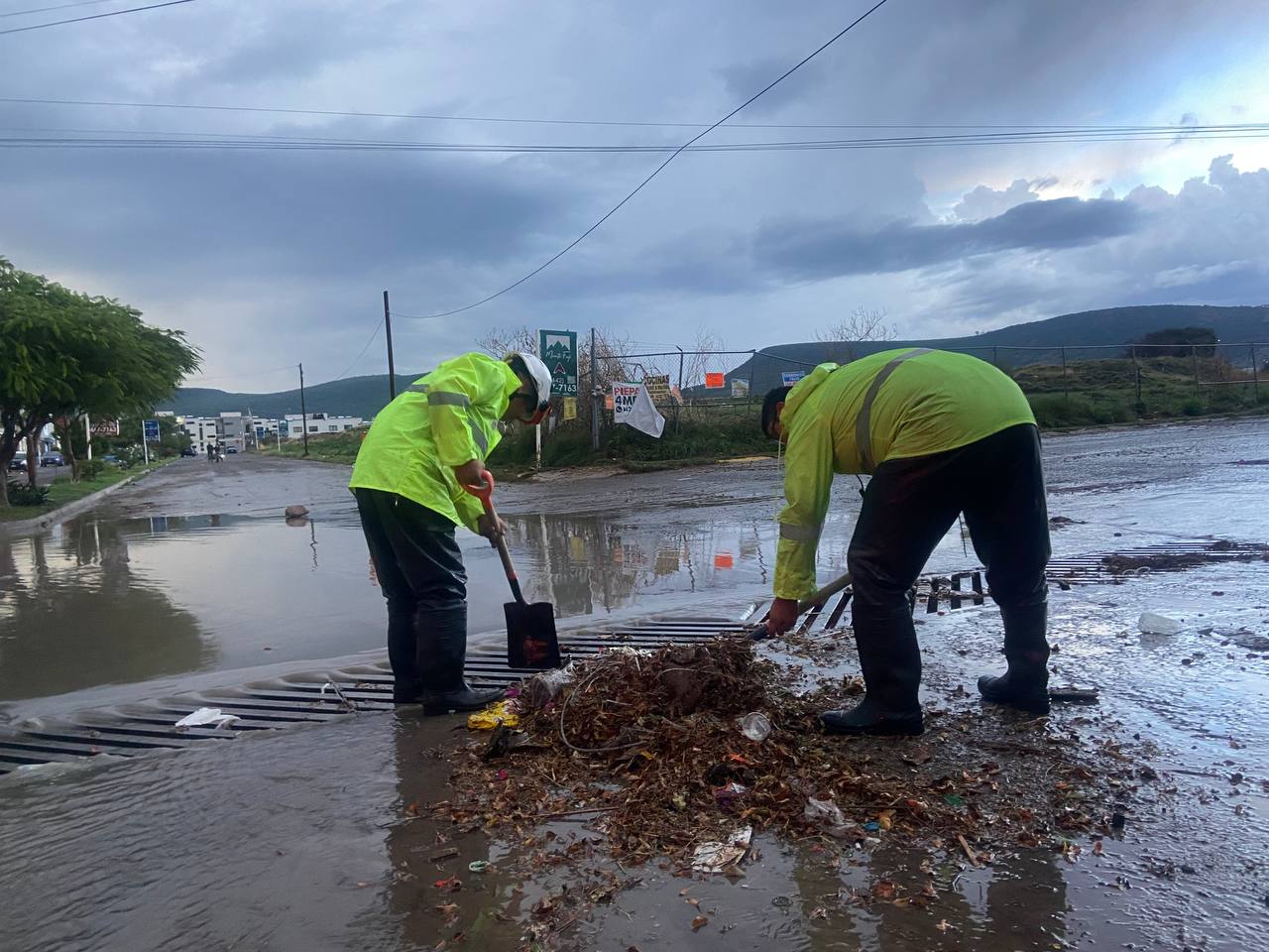 En la colonia Jurica, los escurrimientos pluviales rebasaron el nivel de banqueta, por lo que personal de Seguridad Pública y Policía Estatal procedió al cierre de algunas de sus vialidades para que el personal de la CEA y Servicios Públicos Municipales realizaran las maniobras necesarias para el desalojo del agua.
