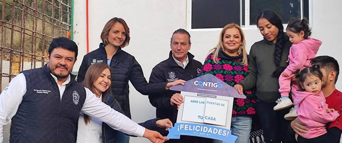 El Mtro. Carlos Manuel Ledesma Robles, Presidente Municipal de San Joaquín, en coordinación con el Director del Instituto de la Vivienda del Estado de Querétaro (IVEQ), Lic. Carlos Astudillo Suárez; la Secretaria de Cultura del Estado, Lic. Ana Paola López Birlain; la Secretaria de las Mujeres, Lic. Sonia Rocha Acosta; así como la Presidenta Municipal de Pinal de Amoles, Lic. Lupita Ramírez Plaza, junto a regidores y funcionarios municipales, realizaron la entrega de una vivienda en la comunidad de Los Herrera.