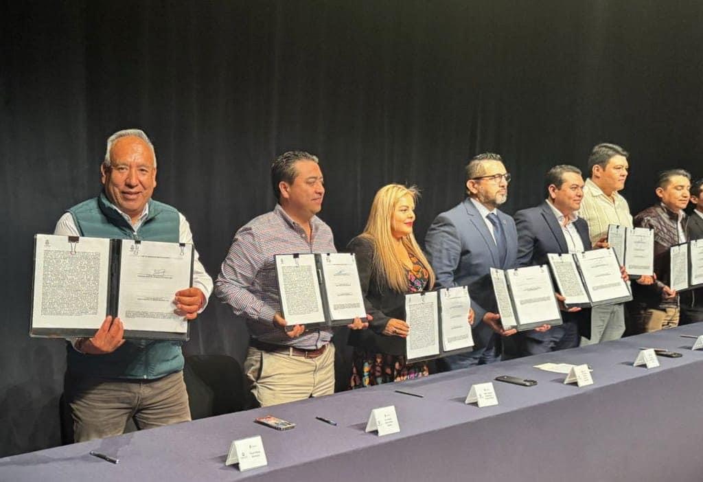 El Presidente del Municipio de Amealco de Bonfil Óscar Pérez acudió a la Firma convenio de colaboración entre estado y municipios de Querétaro.