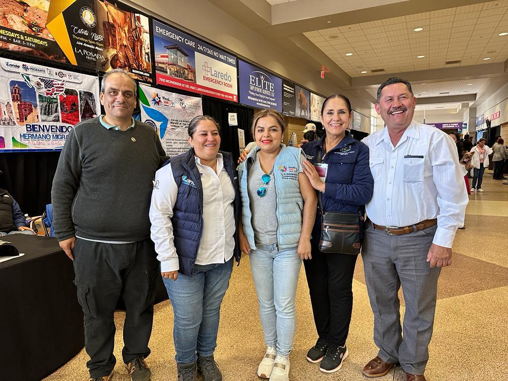 acompañado por las regidoras Sugey de Jesús Muñoz Rubio, Lupita Cosino Sandoval, y el regidor Jesús Uribe Yáñez, Se encuentran en la Arena Energy, en Laredo Texas presentes en la apertura de registro de la Caravana de migrantes de la Sierra Gorda Queretana.