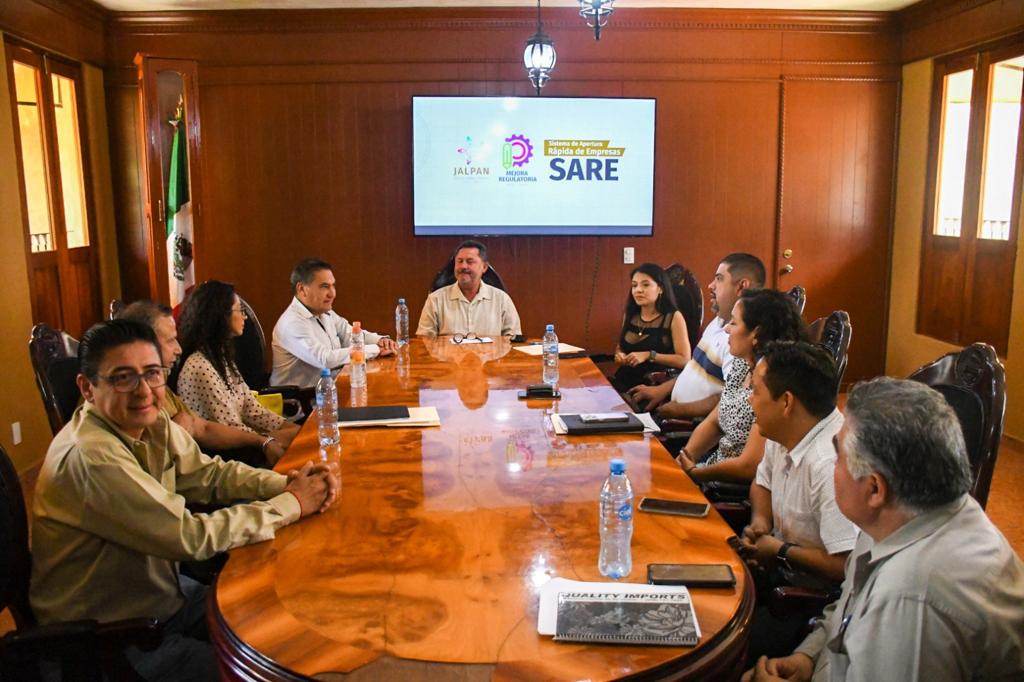 recibió al Comisionado Estatal de Mejora Regulatoria del Estado, el C.P. Pedro Paredes y a la Lic. Gabriela Hernández, Jefa de Departamento de Integración y Mejora Administrativa, en una reunión concertada con empresarios y autoridades municipales, para resaltar el logro por parte de la actual administración en su Certificación del Módulo SARE otorgada al Municipio de Jalpan de Serra, ante la CONAMER.