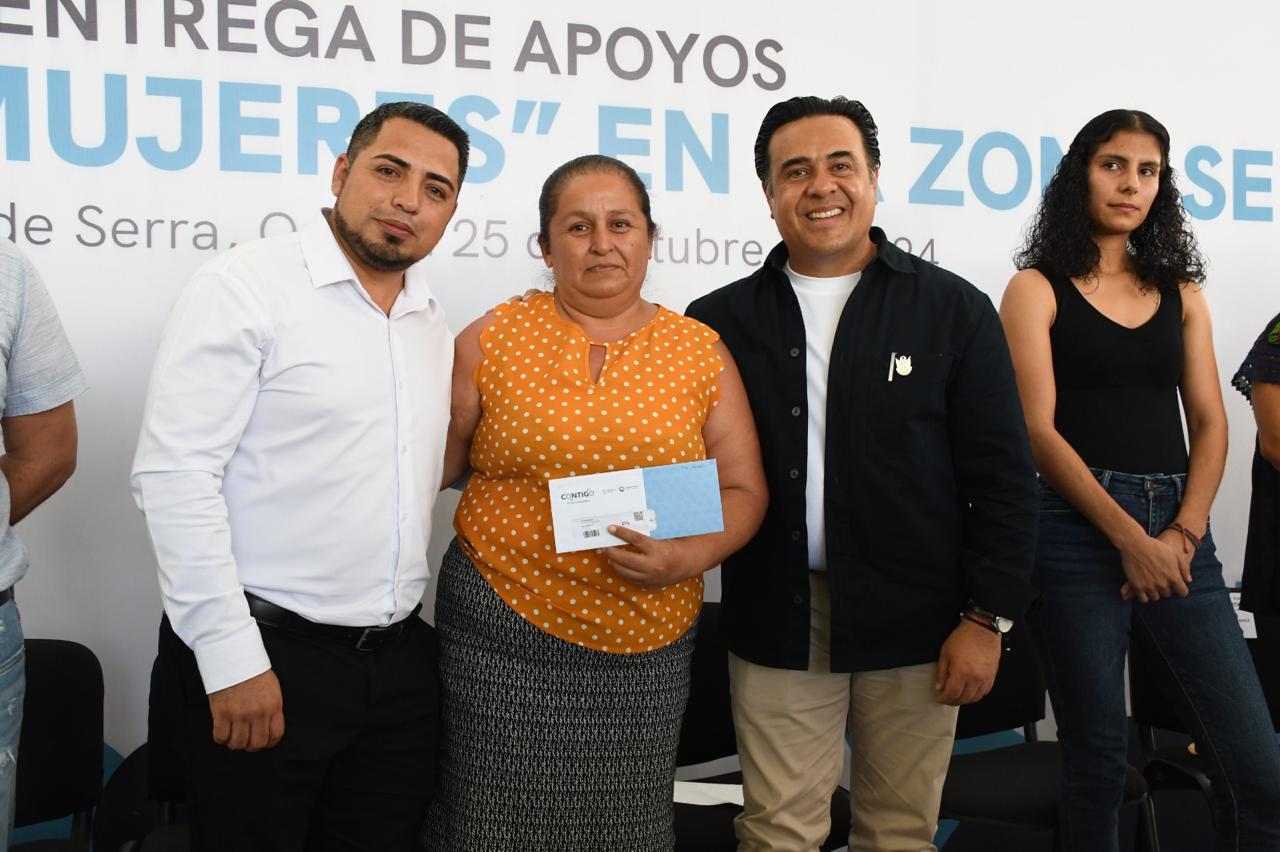 Rubén Hernández Robles de Jalpan de Serra, Lupita Ramírez Plaza de Pinal de Amoles, y la Lic. Yunuen Araceli Benítez Maldonado de Landa de Matamoros. En una entrega simbólica, se destacó a beneficiarias representativas de los programas «Tarjeta