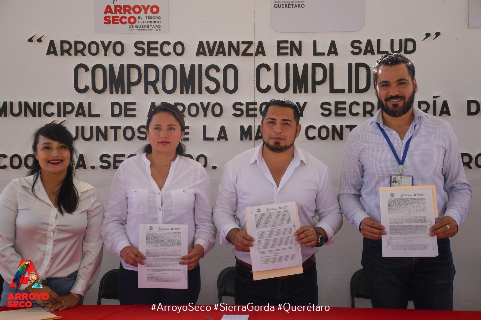 Arroyo Seco avanza en salud con la firma de convenio entre el Gobierno Municipal y la Secretaría de Salud.